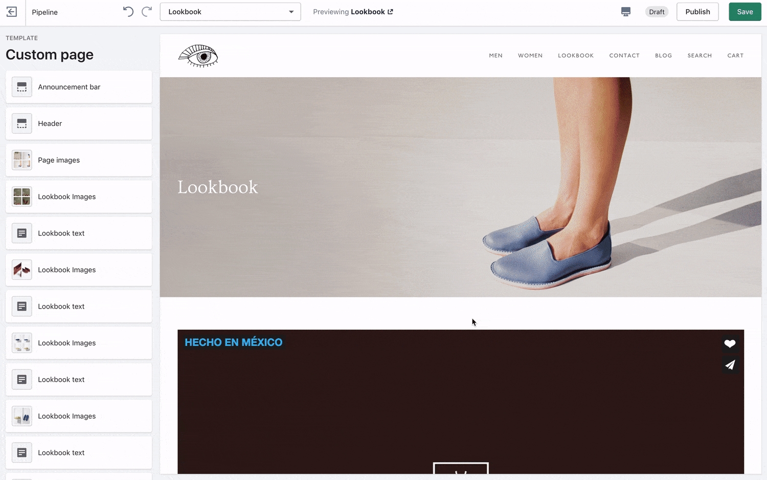 With Pipeline's lookbook page template, you can add a mix of images and text with various layout options: