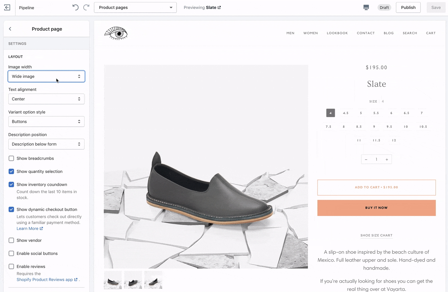 Use Pipeline's product page layout controls to customize the look and design of your product pages.