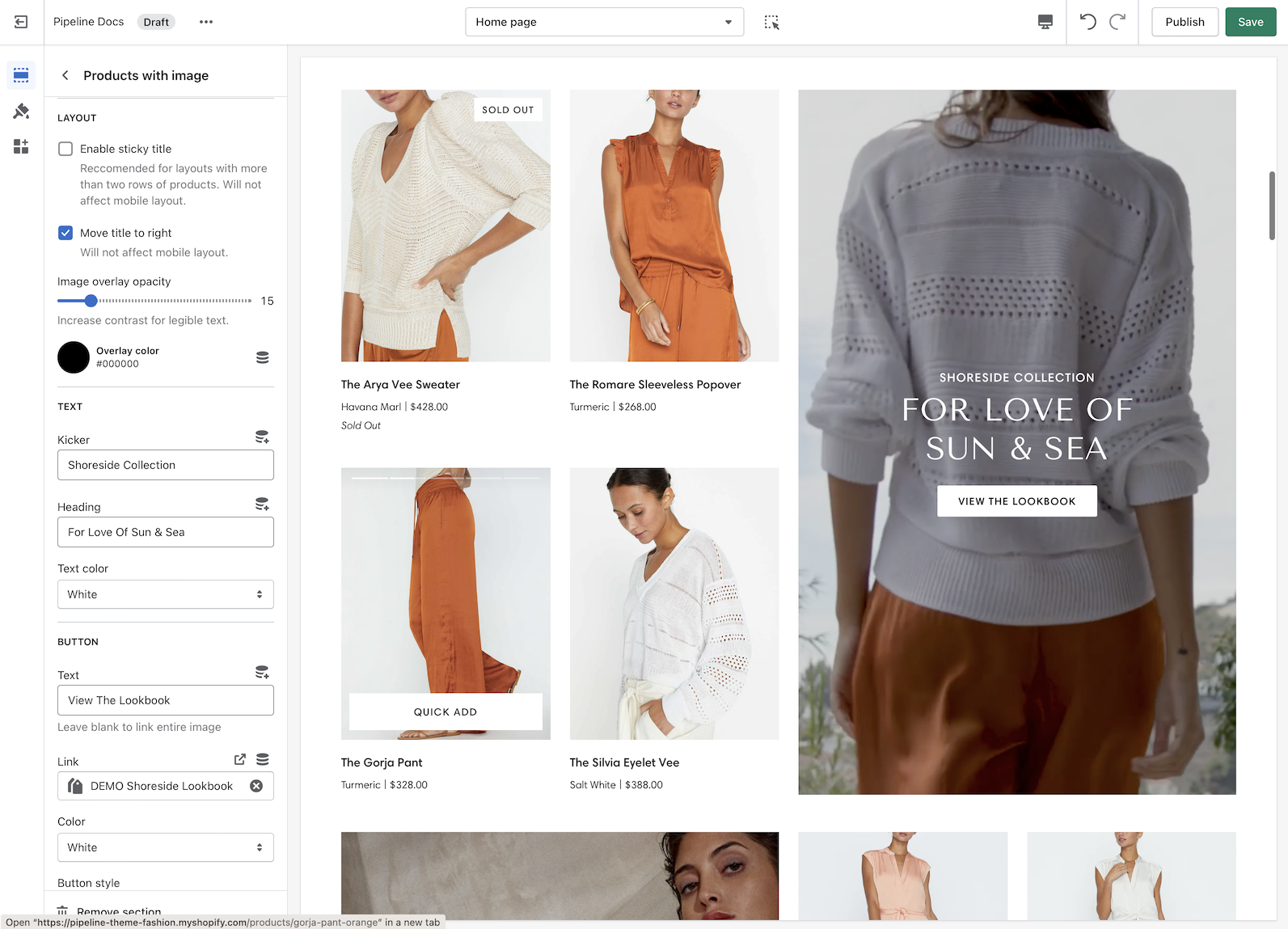 Build a beautiful custom layout with select products from a collection and compliment it with a video or image: