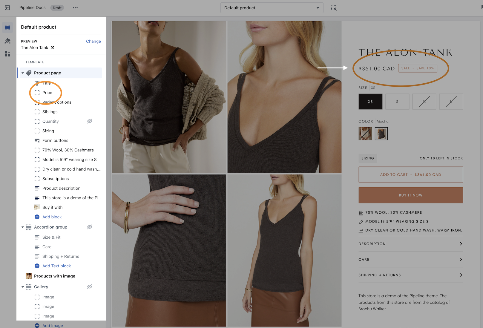 <figure><img src="https://3528441459-files.gitbook.io/~/files/v0/b/gitbook-x-prod.appspot.com/o/spaces%2F-LovEU3LvzkJzFkXarYD-4120580575%2Fuploads%2FM0si7xRwL0YgQKLsVBb5%2Fprice%20block.png?alt=media&#x26;token=f75e08eb-1297-4ee7-a174-65a2aabf2425" alt=""><figcaption><p><strong>Price block has been added and is not hidden</strong></p></figcaption></figure>