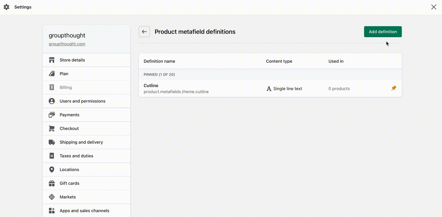 Next, we will use these newly defined metafields in the Product Setup for each product: