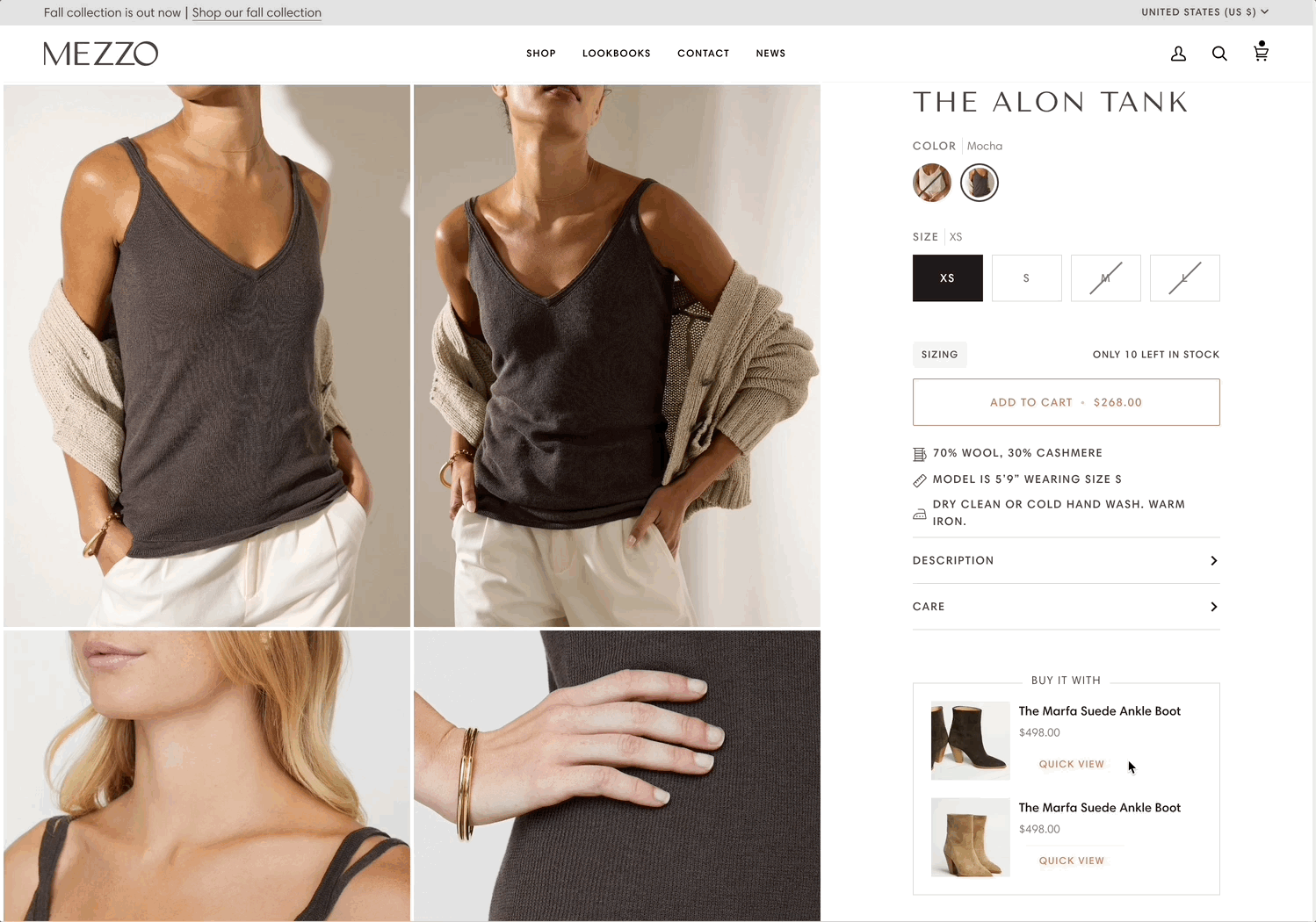 When trying to upsell products that have no variant options, a convenient "**Add to Cart**" button can now be found with just one click: